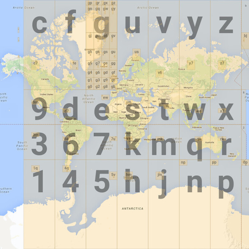 This property allows us to group entries dynamically depending on the zoom level, shorter hashes represent larger clusters, longer hashes zoom in to finer detail.