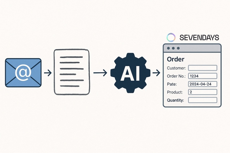 Dus het introduceren van een op maatgemaakt bestelplatform is nog steeds een goed idee maar je kan dat steeds verder uitbreiden door de ingave van het order met de slimme AI-oplossingen van Sevendays verder te automatiseren tot een nog klantvriendelijkere ervaring, zonder in te boeten aan menselijke controle en zonder je team te moeten uitbreiden.