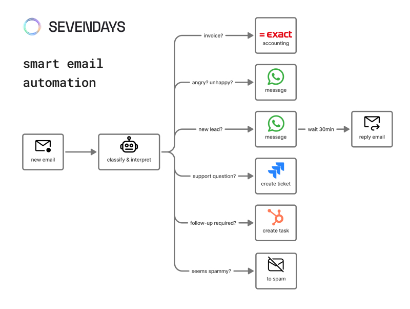 Bij Sevendays zetten we slimme e‑mailautomatisatie op die helpt minder te klikken en door te sturen en meer te focussen op klantencontact, nieuwe projecten en relaties opbouwen.